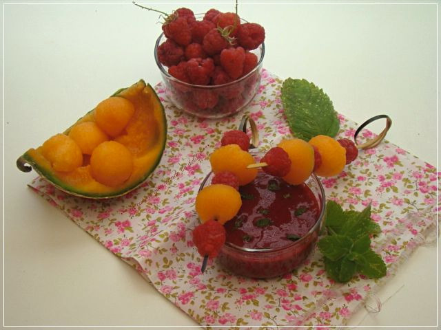 BROCHETTES DE FRUITS,SOUPE DE FRAMBOISES