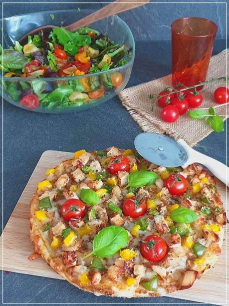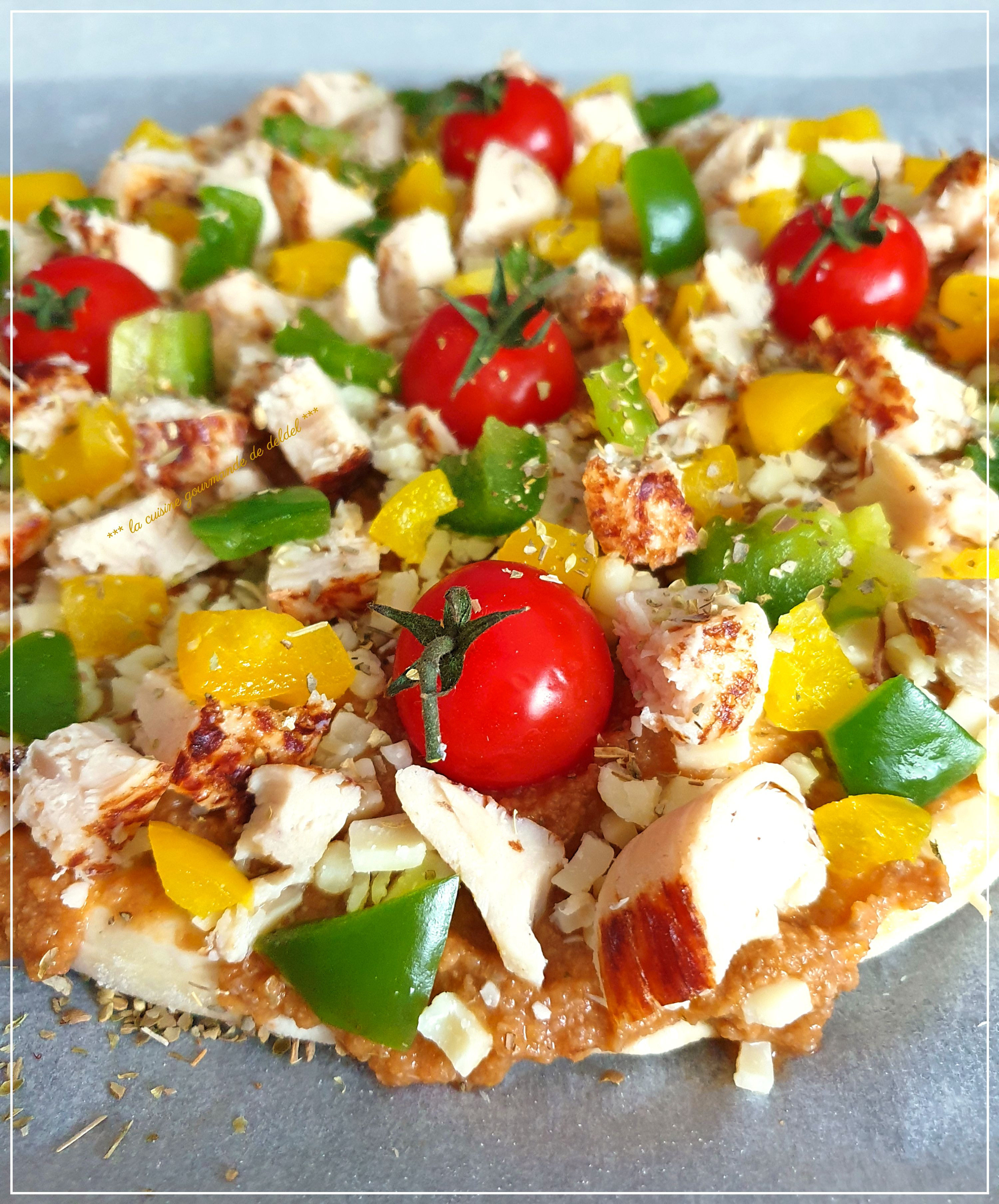 de l'oignon,de l'ail, du thym,du poulet de la Mozzarella